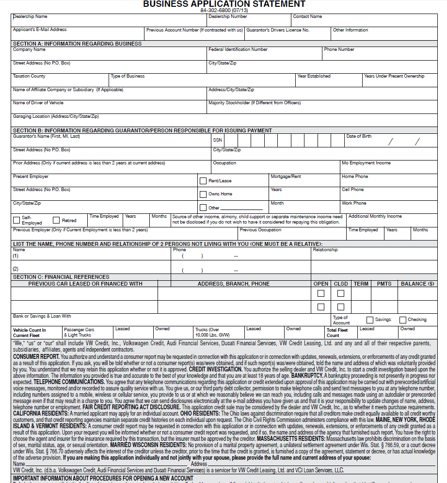 Business Credit Application